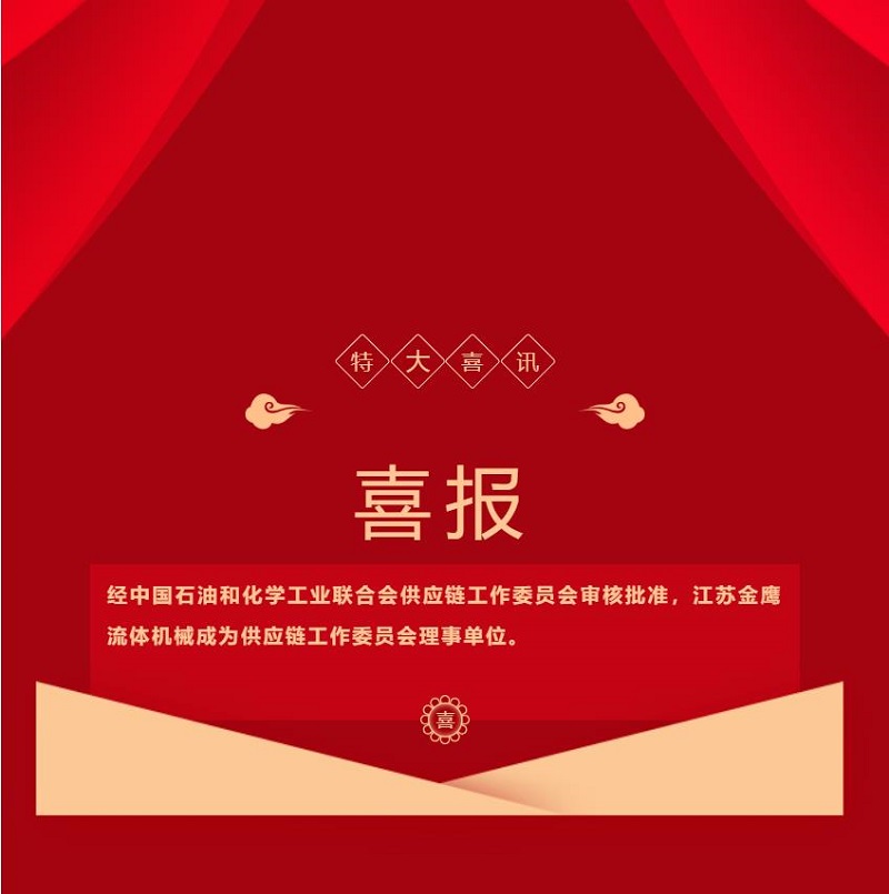 【喜報(bào)】熱烈祝賀江蘇金鷹流體機(jī)械成為中國(guó)石油和化學(xué)工業(yè)聯(lián)合會(huì)供應(yīng)鏈工作委員會(huì)理事單位!