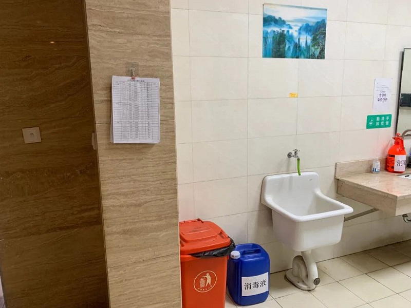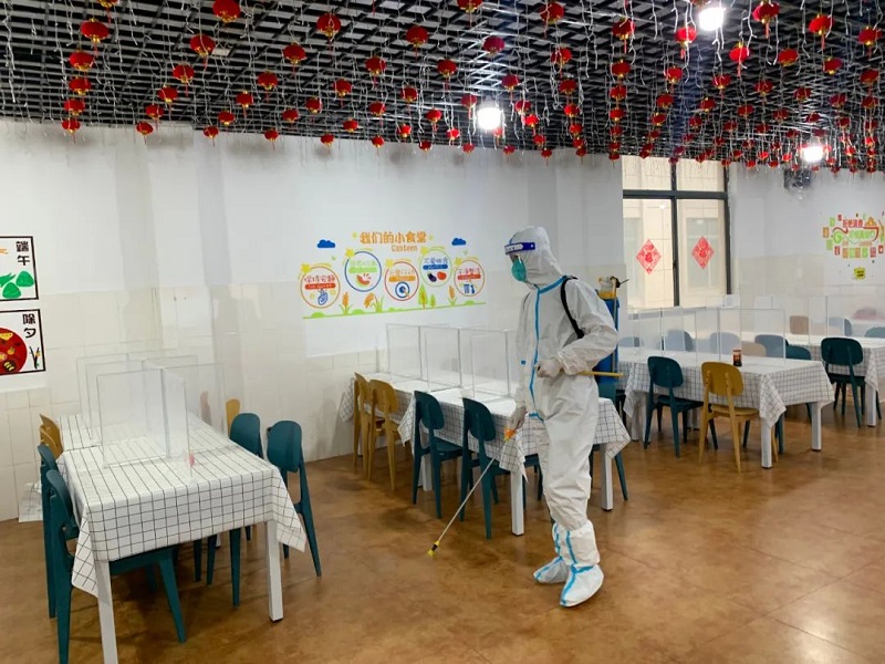 車間、電梯、衛(wèi)生間、大堂、食堂等區(qū)域嚴(yán)格消毒,不放過每個角落,不放過每個細(xì)節(jié)。食堂還專門放置了透明隔板,保障用餐安全。