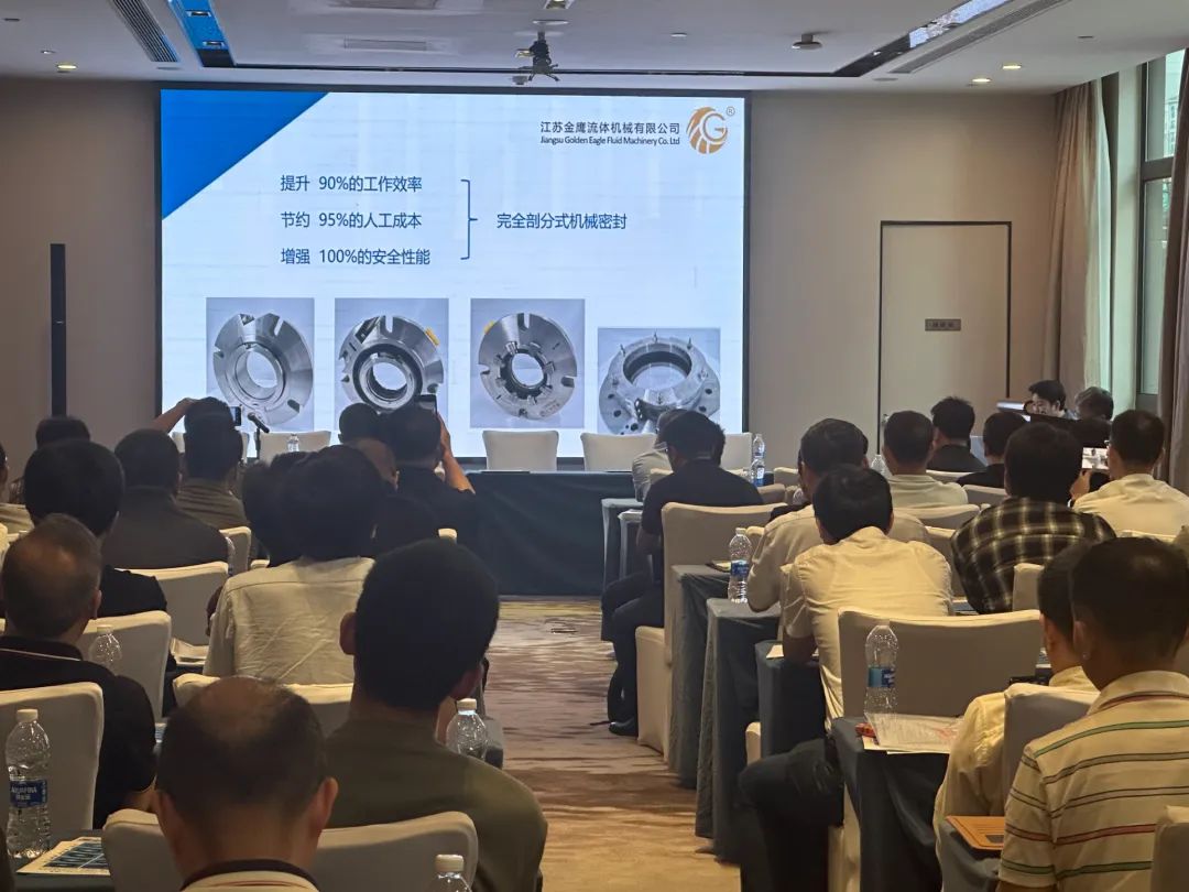 江蘇金鷹作為代表之一也為大家?guī)?lái)了精彩的報(bào)告分享,金鷹總經(jīng)理童慧女士與大家分享了剖分式機(jī)封技術(shù),大家認(rèn)真聽取了分享并展開了熱烈的討論,收獲頗豐。大家在分享中得到了啟發(fā),在討論中找到了新的思路,在交流中建立了更深的聯(lián)系。