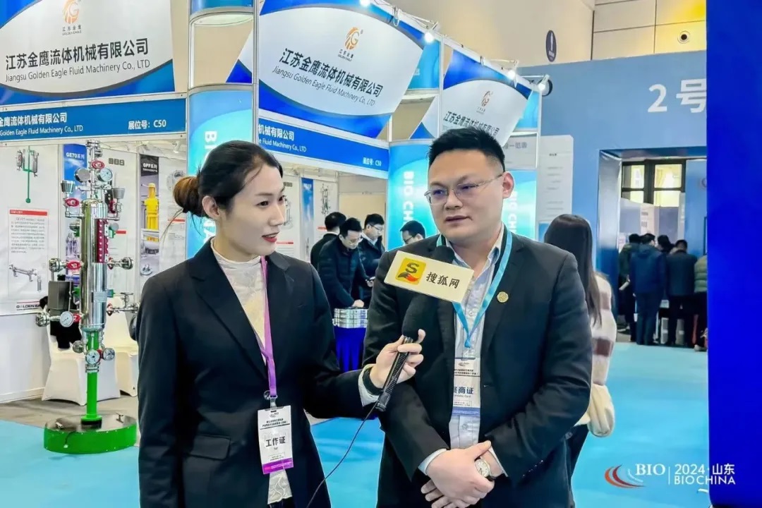 在國(guó)際生物發(fā)酵展上,江蘇金鷹剖分式機(jī)封隆重亮相,金鷹王總作為代表接受了搜狐網(wǎng)專(zhuān)訪報(bào)道。